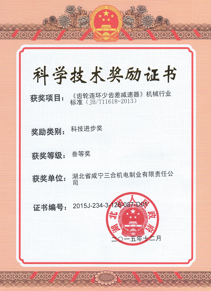 :Third prize of science and technology progress award of QS series reducer Indust