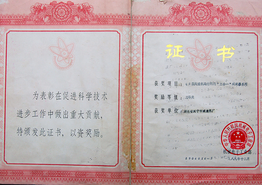 QS系列減速器機械電子工業(yè)部科技進步三等獎