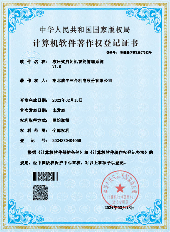 20240318液壓式啟閉機智能管理系統(tǒng)--計算機軟件著作權(quán)登記證書